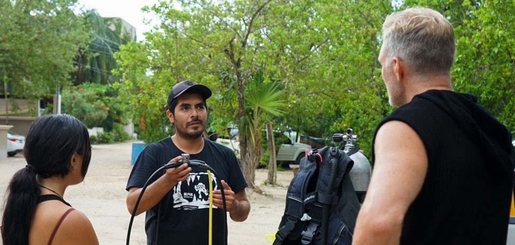 All the skills that you are going to learn in this course and you already saw in the theory part, are practiced first in confined water: in a swimming pool, off a calm beach, or in a shallow open water cenote. We combine these sessions so you can gain confidence faster and master the required skills easily.